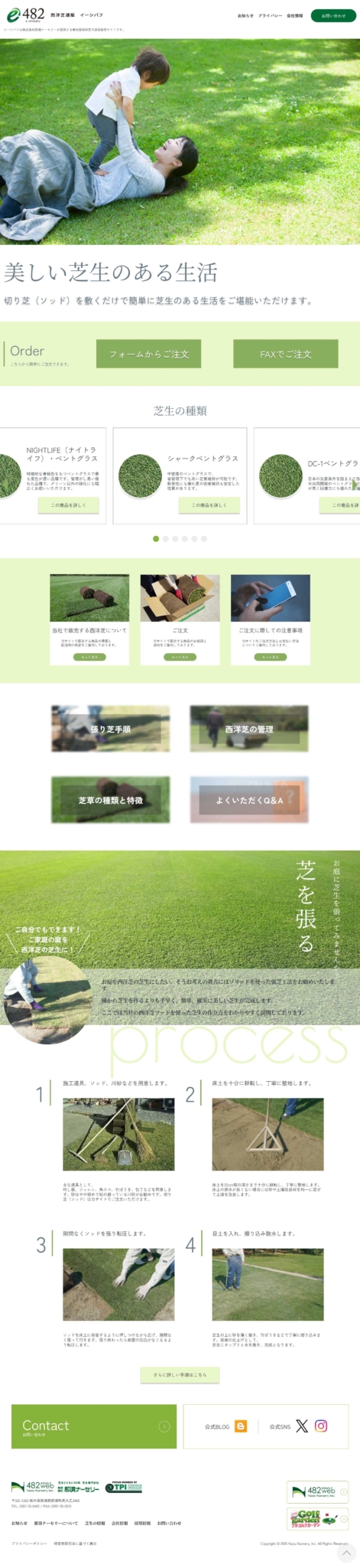 イーシバフWebサイトは、芝生専門会社である株式会社那須ナーセリー様が提供する 寒地型西洋芝の通信販売サイトです。